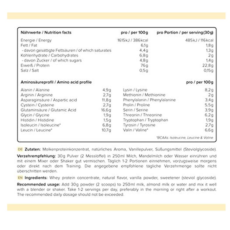✔ 100% natural protein powder without additives:Contains no artificial sweeteners (such as aspartame, sucralose or acesulfame K), flavourings, colourings, flavour enhancers or thickeners.