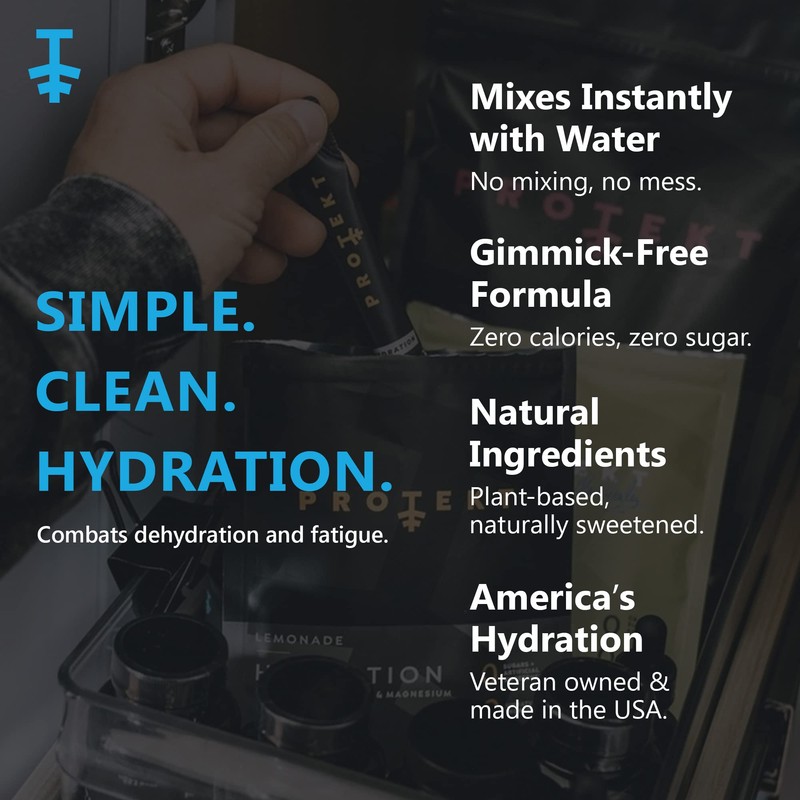 - Founded by Veterans & Athletes: We are a team of veterans and athletes with a deep connection to the outdoors. That’s why we created Protekt to give you a range of clean hydration mixes that allow you to remain in an optimal state for outdoor performance. Our relentless focus on quality, natural ingredients, and scientifically backed testing can be your edge. Proudly Made in the USA.