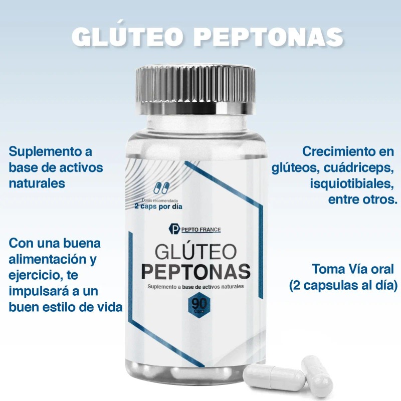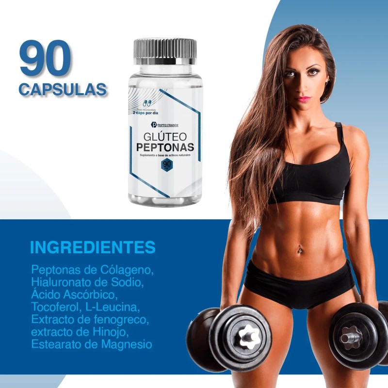 - ORIENTACIÓN: HOMBRES Y MUJERES ATLETAS. Las peptonas para glúteos en cápsulas son un tipo de suplemento alimenticio que se utiliza para mejorar la apariencia de los glúteos. Estas cápsulas contienen péptidos creados a partir de la hidrólisis de proteínas con la acción de las enzimas. Las peptonas actúan estimulando la síntesis de colágeno y elastina, dos proteínas clave para mantener la piel joven y saludable. Esto puede mejorar la apariencia de los glúteos y proporcionar un aspecto más tonificado y definido. Además, las peptonas también pueden contribuir al incremento del volumen muscular y ayudar a evitar la flacidez. Las peptonas en cápsulas se consumen siguiendo las recomendaciones del fabricante en cuanto a la dosis y frecuencia de consumo, así como tener una dieta sana y equilibrada junto a la ingesta de estos suplementos. En cuanto a los beneficios, pueden ayudar a: