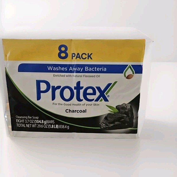 Protex Charcoal Soap Natural Antibacterial With Flaxseed Oil 8 Bars Of 3.7 Oz..