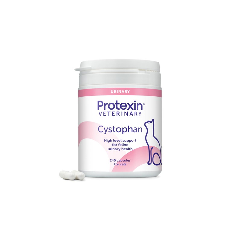 • Protexin Veterinary Cystophan Capsules for Cats combine N-acetyl D-glucosamine, hyaluronic acid and L-tryptophan to provide high-level support for feline urinary health and stress levels in one dose, reducing the products your cat needs to take