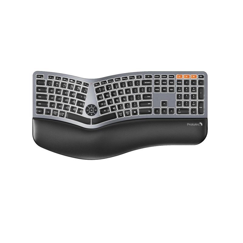 ProtoArc Backlit Bluetooth Ergonomic Keyboard, EK01 Plus Full Size Wireless Split Keyboard with Dual Bluetooth and USB, Cushioned Wrist Rest, Rechargeable, Compatible with Windows/Mac/Android:_Grey