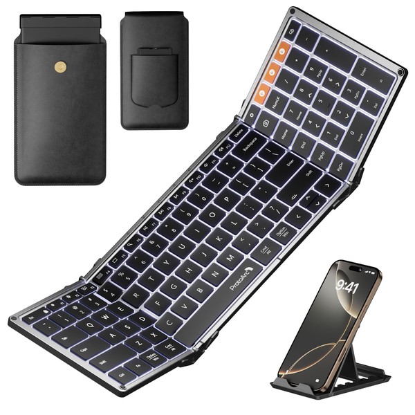 ProtoArc Backlit Foldable Keyboard, XK01 Plus Folding Portable Bluetooth Keyboard for Travel, True Full Size External Wireless Keyboards with Backlight for iPad Tablet Smartphone Laptop PC