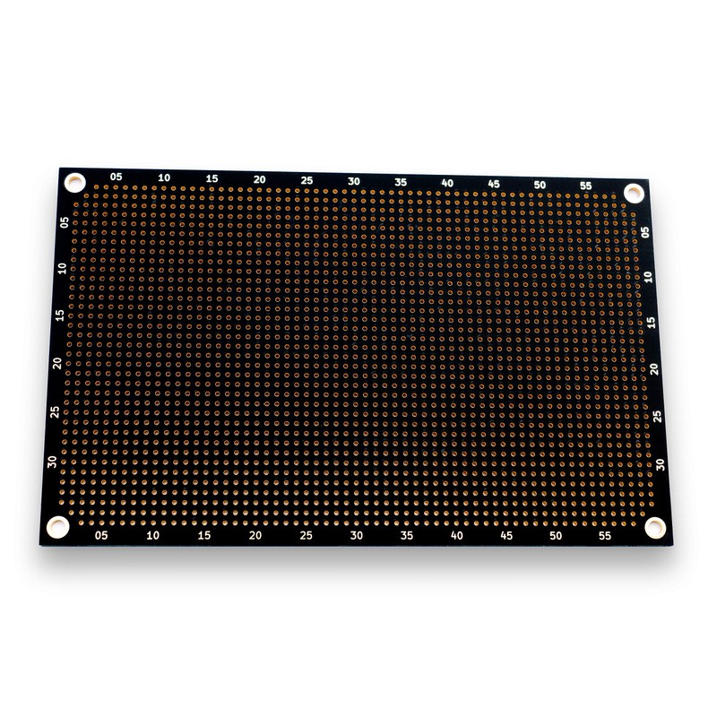 - Length: 160 mm; Width: 100 mm; Colour: Black; Grid: 2.54 mm; Pad Sides: Single Side; Pad Shape: Round; Pad Quantity: 2,148 Pads | 1 x (60 x 36 - 4 x 3); Surface: ENIG-RoHS; … See product description.
