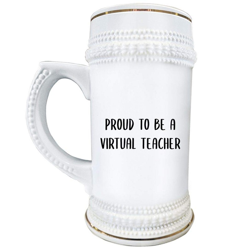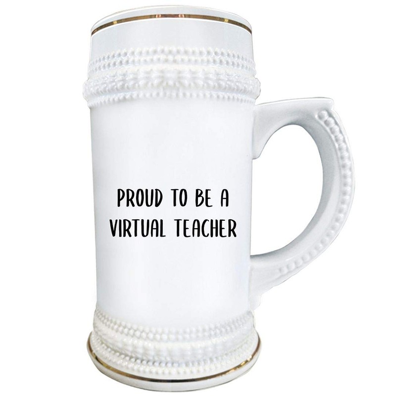 Proud to Be a Virtual Teacher - Beer Stein Mug 22oz Ceramic Drinkware - Funny Cute Appreciation Gifts for 2020 Quarantine Pandemic - Professor Teaching Assistant Distance Learning School Year Idea