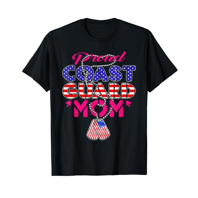 - United States Flag and anchor dog tags picture tee. Great gift for Independence Day 4th of July or Christmas for a proud mom of a US coast guard. Wear to a coast guard party or a parade and show others how proud you are of your son or daughter.