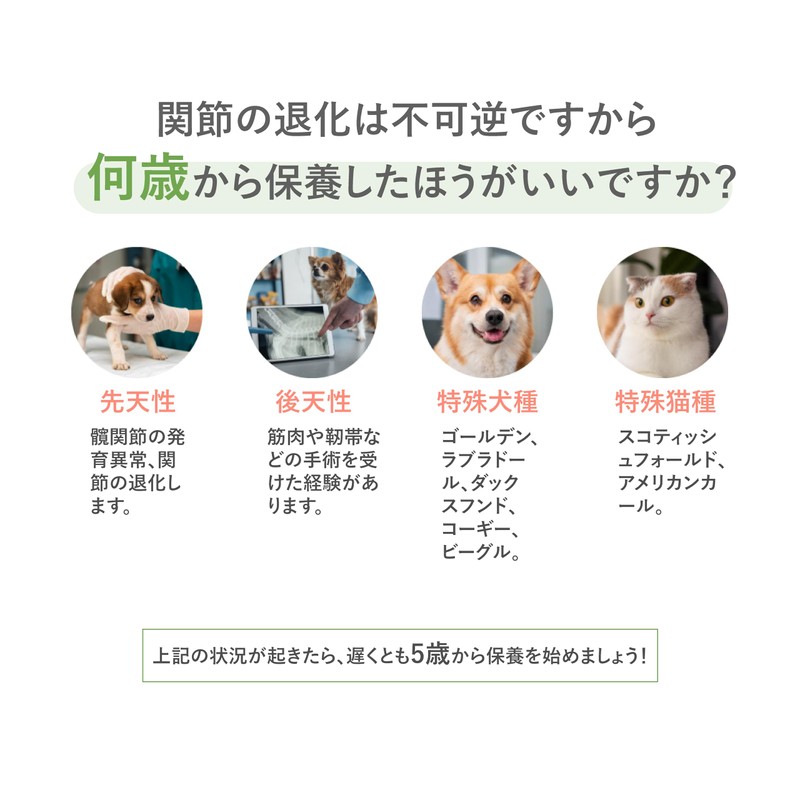 Improve joint aging and maintain the flexibility of joints, cartilage and bones. The ultimate nutritional supplement for the dogs and cats of all ages.