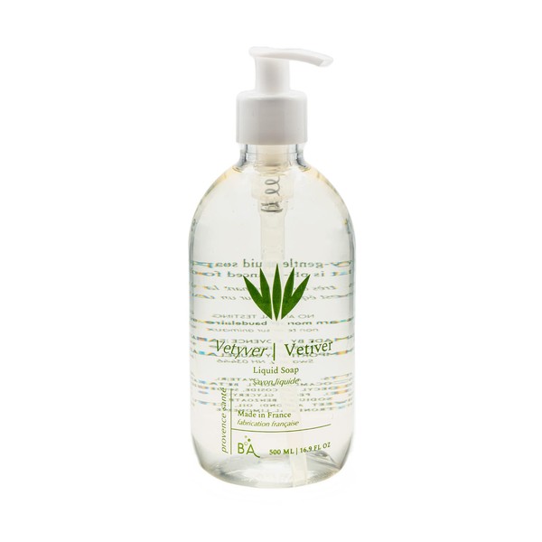 Provence Sante Natural Liquid Soap - Moisturizing Almond Oil Hand Soap with Aromatic Vetiver Scent - Elegant Pump Dispenser for Kitchen & Bath (16.9 oz)