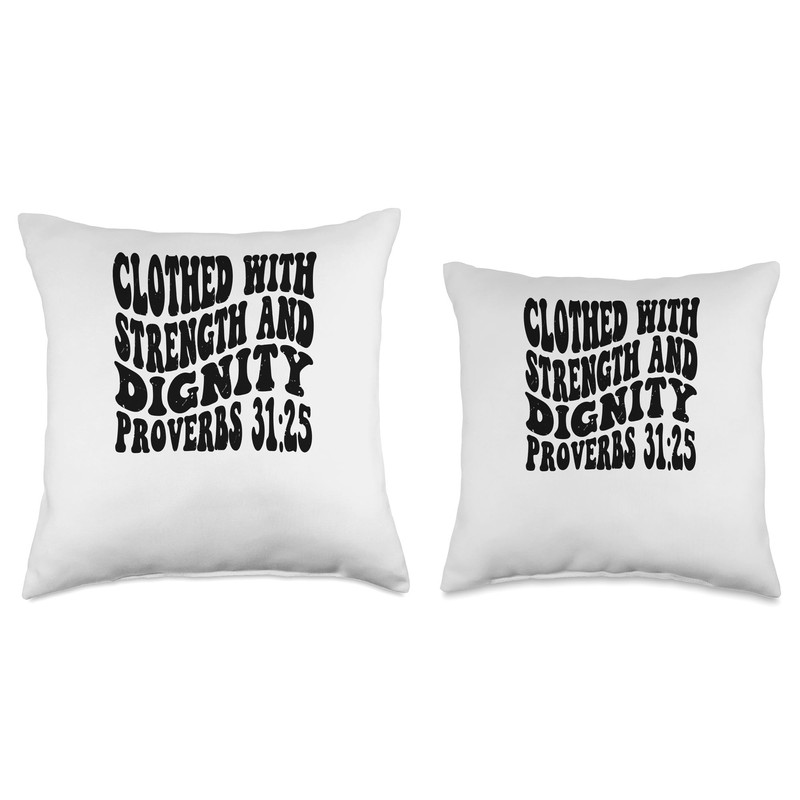 Proverbs 31 25 Clothed with Strength and Dignity Retro Vinta Throw Pillow