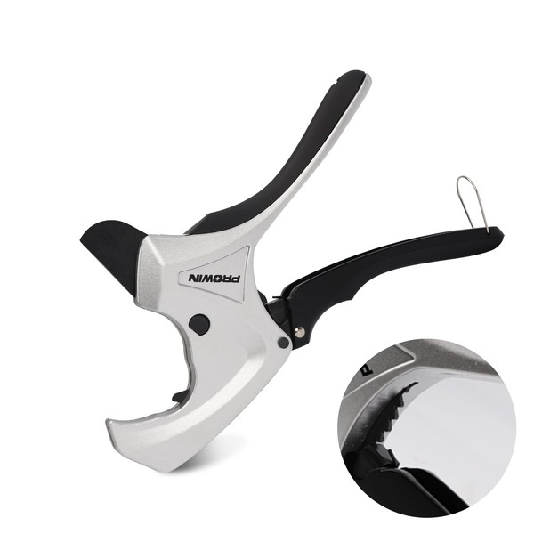 PROWIN Ratcheting PVC Pipe Cutter, 2-1/2" Capacity with SK5 Replacement Blade, Heavy-Duty PEX/PVC/PPR Plastic Pipe Cutting Tool, Efficient Extended Handle and Precise Cutting