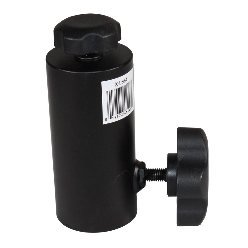 The ProX X-LS64 Universal Compact Adapter is a Lighting Mount for Speaker Stands with a 3/8" Pole. Can be used with any brand or model of a stand that has a 1 3/8" top pole. It can be used to mount small lighting fixtures, small/compact moving heads, gobo projectors, or most any other light with a hole mount flange.