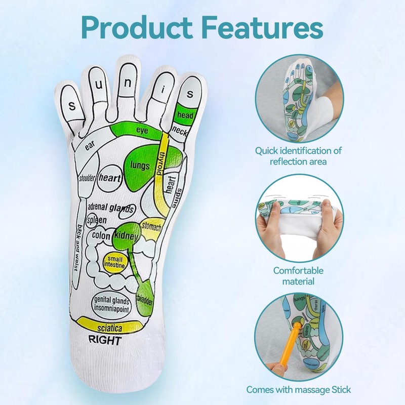 - Relief Tired - Use the printed design on the gloves and socks to list the pressure points for massage, which helps to find the corresponding parts and systems of the body, helping you to relax yourself and effectively relieve fatigue.