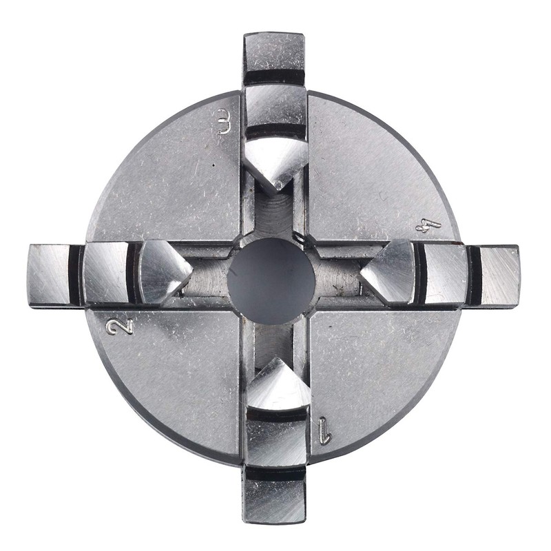 - Box contents include a 4-jaw lathe chuck