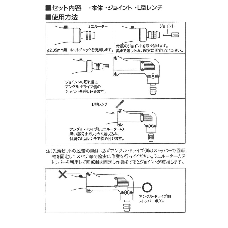 - Product Contents: Main unit, dedicated joints, L-type wrench, collet chuck diameter 0.09 inch (2.35 mm) (already installed)