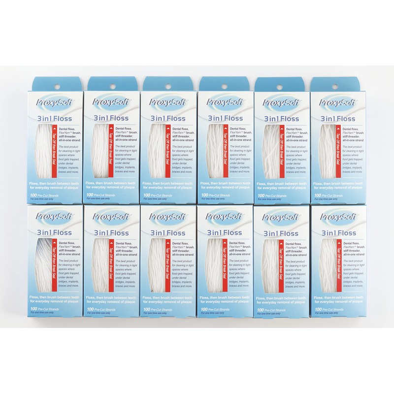 Proxy Soft 3 in 1 Floss Precut 100 Count 12 Pack (1200 Count)