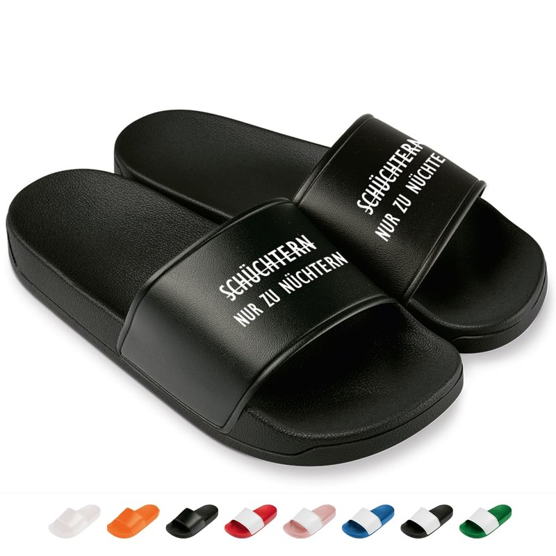 - Auffällige Designs mit Party-Charakter – Die breite Lasche ist mit witzigen Sprüchen und Motiven bedruckt und macht die Sandalen zum echten Hingucker bei jeder Party, am Pool oder auf Festivals.