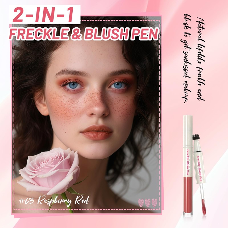 - USER-FRIENDLY: Beginners and enthusiasts of makeup can quickly learn it. After foundation and before loose powder,use the sponge head to apply blush on the cheeks and spread it out with a powder puff. Use the freckle pen to seal and color on the cheeks and the nasal dorsum. Whether it's a small area or a large area, sparse or dense, you can precisely and easily customize the freckles you want.