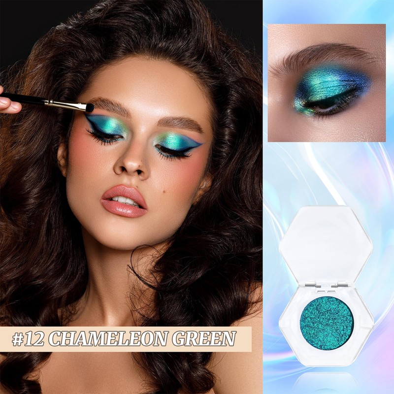Prreal Chameleon Eyeshadow Glitter,Glitter Shimmer Eyeshadow, Multichrome Glitter Highlighter Eyeshadow,Highly Pigmented Metallic Eyeshadow Palette,Long-lasting Eyeshadow Makeup Gift (12 Green)