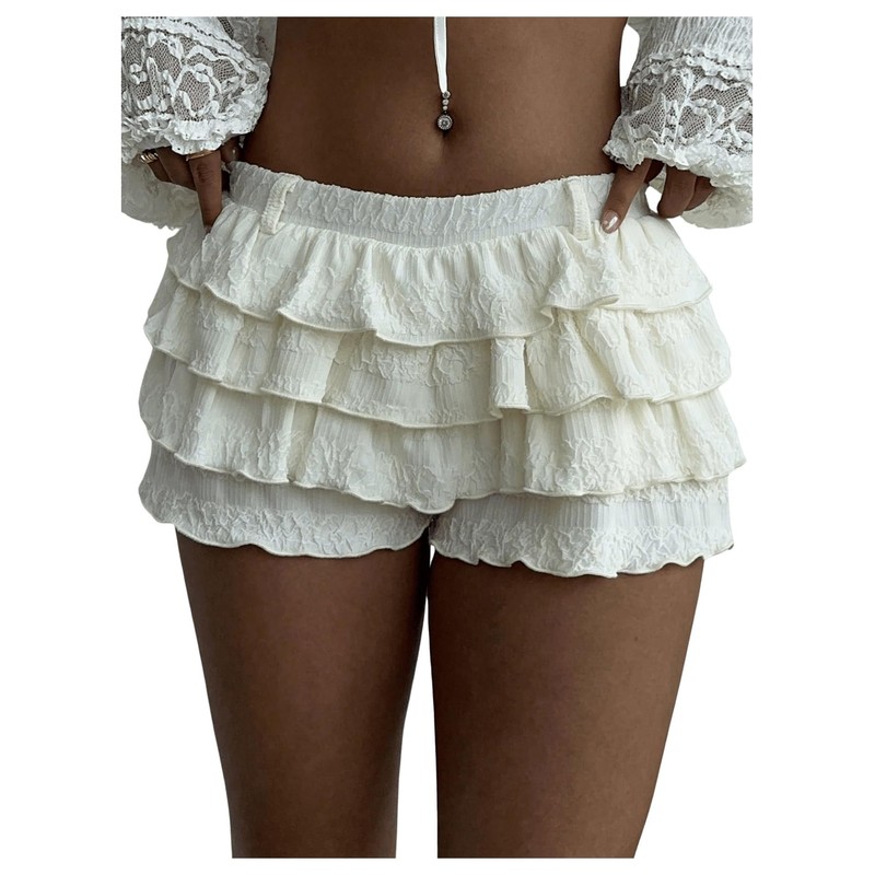 PRSFPN Women's Y2k Ruffle Shorts Tiered Layers Bloomers Cute Mini Short Pumpkin Pants with Belt Loops (Apricot, X-Large)