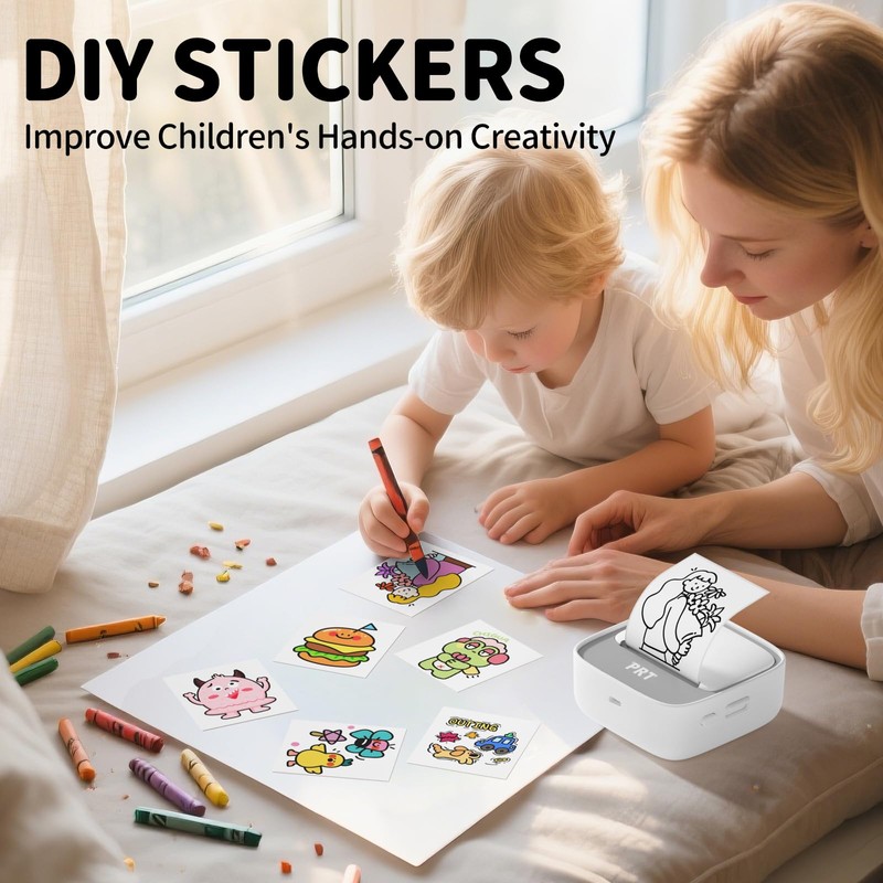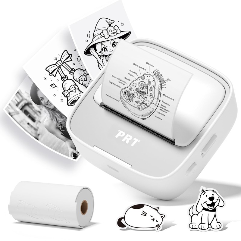 PRT Mini Sticker Printer Portable Thermal Printer with 1 Roll Sticker Paper Inkless Sticker Maker Bluetooth Label Printer for Study Notes,Lists,Pictures,DIY Creations Small Printers for Home Use