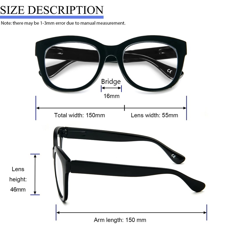 - Oversized Retro Design Reading Glasses : the savior of large face, spring hinges resin frame material for durability and comfortable long-term wearing.