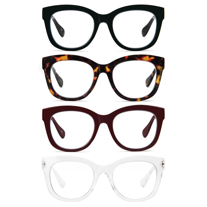 - Super Value: 4 pairs Stylish oversized ladies reading glasses. You can keep a pair at home, office, in your car and your favorite reading spots.