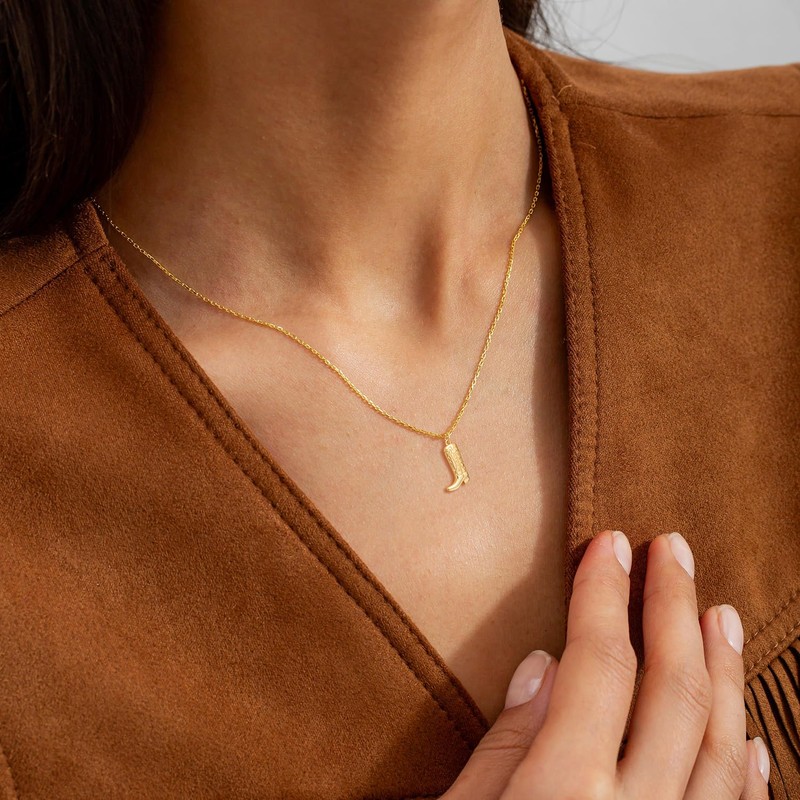 PRTGL Boots Necklace for Women: Dainty 14k Gold Western Cowboy Boots Pendant ...