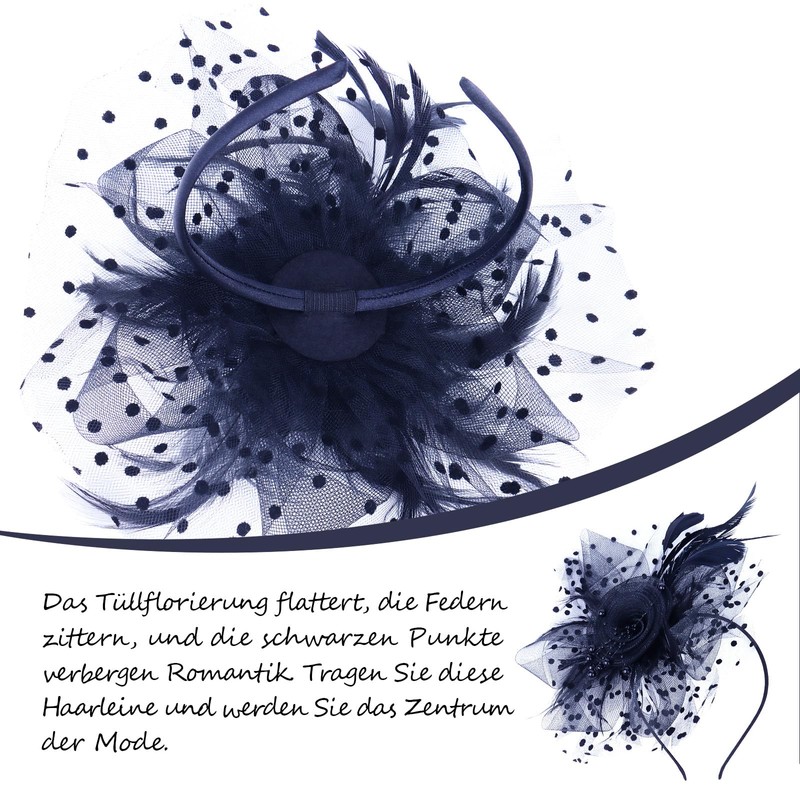 - Dunkelblaue Eleganz mit Federn:Unser kopfschmuck fascinator in dunklen Tönen, verziert mit schwarze federn – als haarreif schwarz perfekt für Hochzeiten & besondere Anlässe.