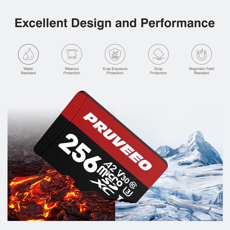 PRUVEEO 256GB A2 U3 V30 4K UHD High Speed Micro SDXC Memory Card with Adapter...