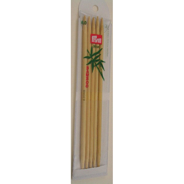 Prym 20 cm x 6 mm Double Pointed Glove Knitting Pins, Bamboo