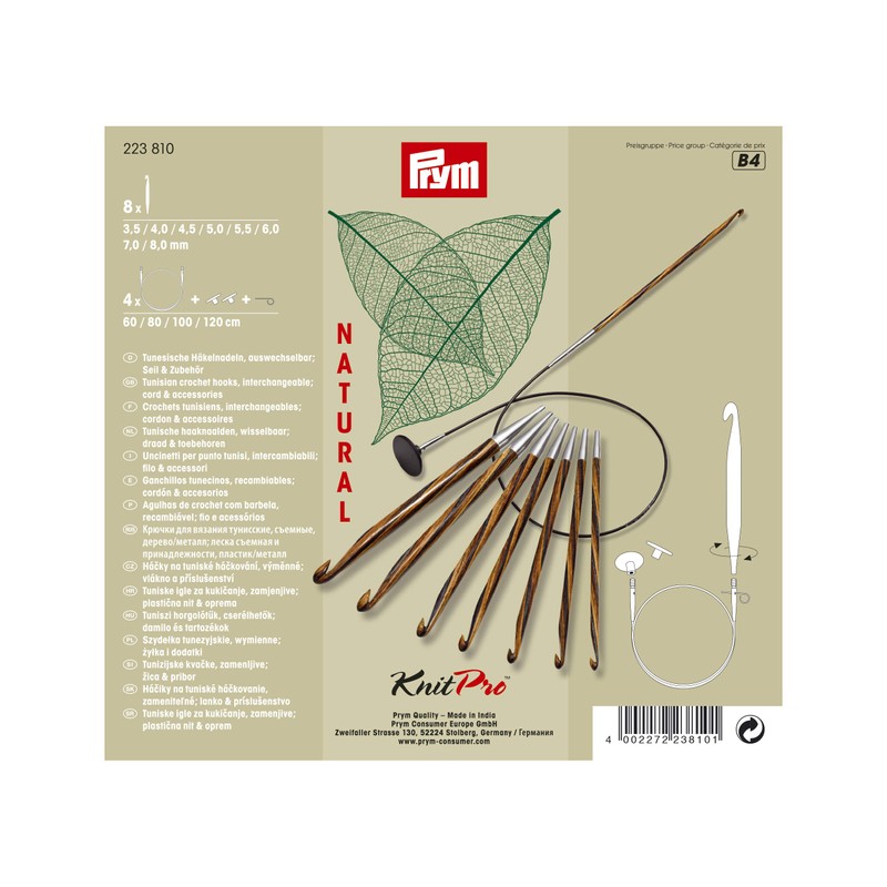 Prym 3.5-8 mm Tunisi Crochet Hooks Set, Natural