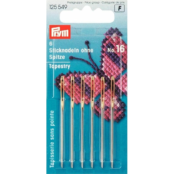 Prym 6 Tapestry needles with blunt point and gold eye Nr. 16 55 x 1,60 mm 125549