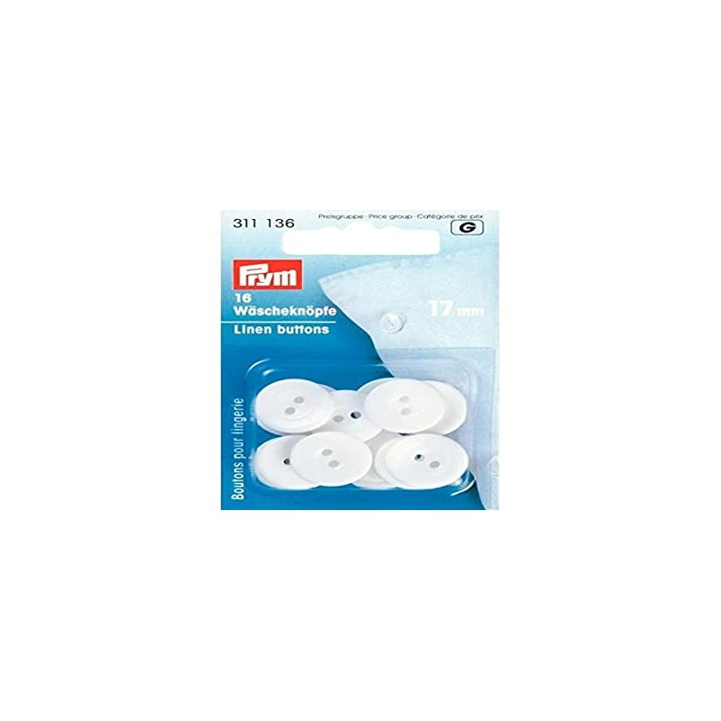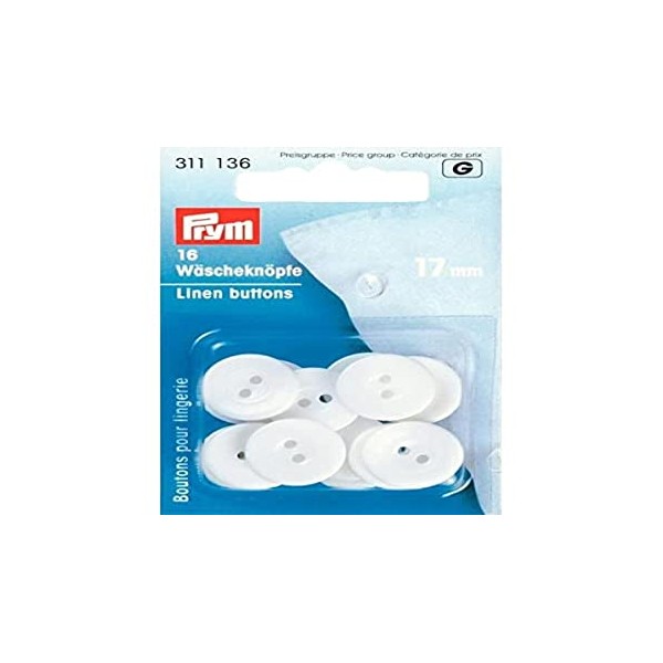 Prym Linen buttons plastic 17mm white