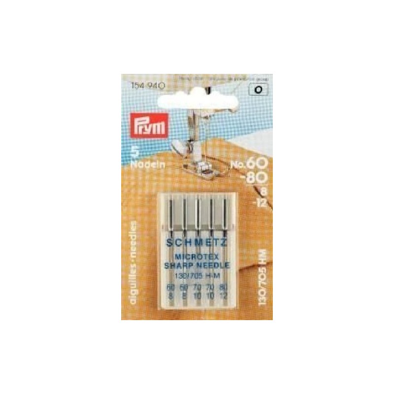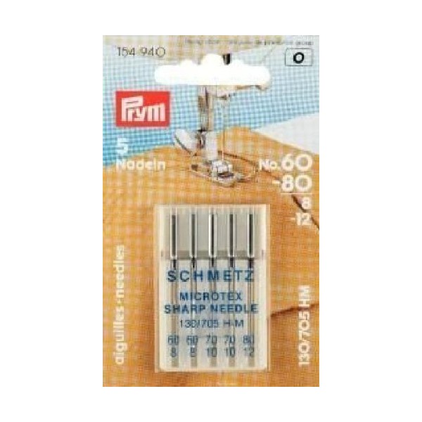 Prym Sewing Machine Needles Microtex microfiber polyester neoprene 130/705 H-M Steel, Silver, 130/70, No. 60-80 154940