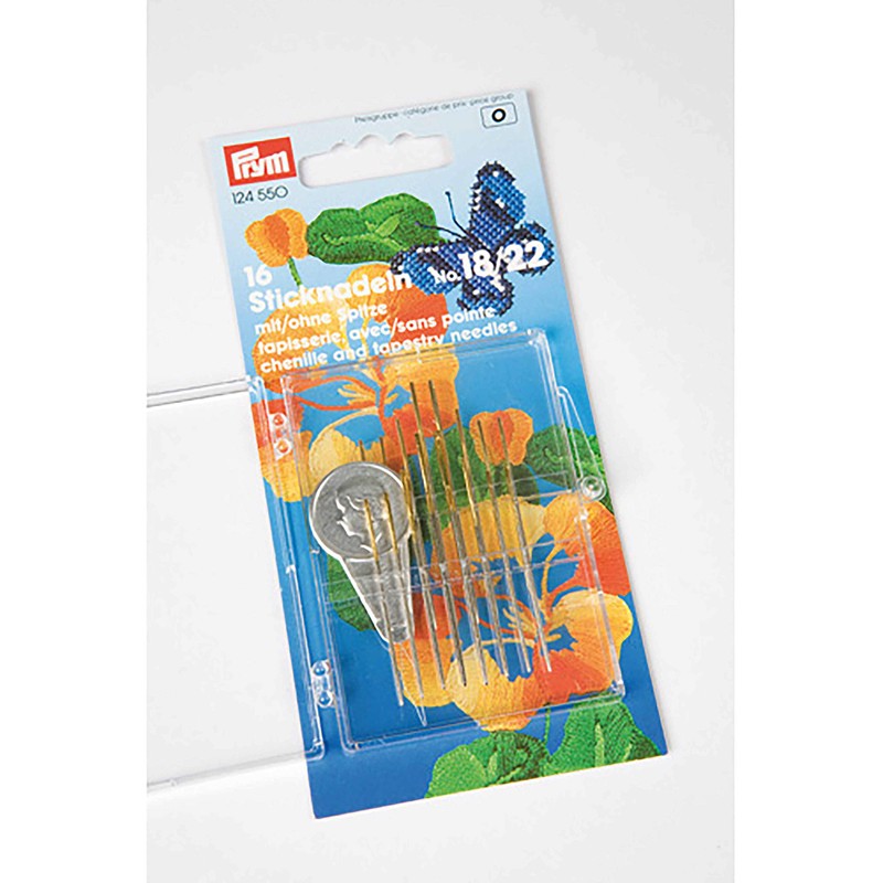 Prym Number 18 - 22 Tapestry Plus Chenille Needles with Threader, Pack of 16, Silver