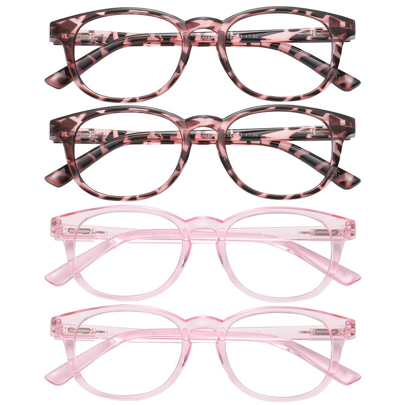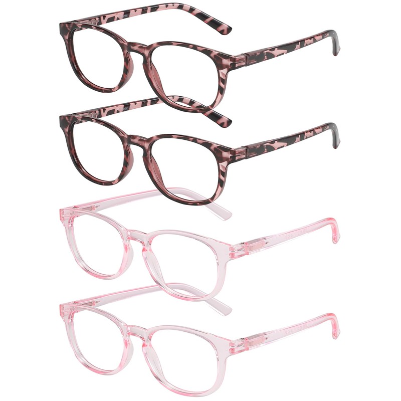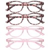 Przene 4 Pack Reading Glasses for Women Men Blue Light Readers with Spring Hinge Oval Frame Pink/Demi 2.0