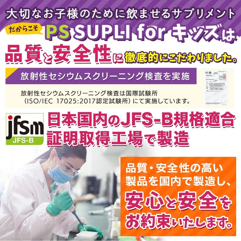 - ✅【ホスファチジルセリン含有】PS SUPLI forキッズは1粒に133.4mgのホスファチジルセリン含有脂質末を含有したサプリです食べやすいグレープ風味のチュアブルタイプだからお子様でもお菓子感覚ではじめられて大人の方もお召し上がり頂けるサプリメントです