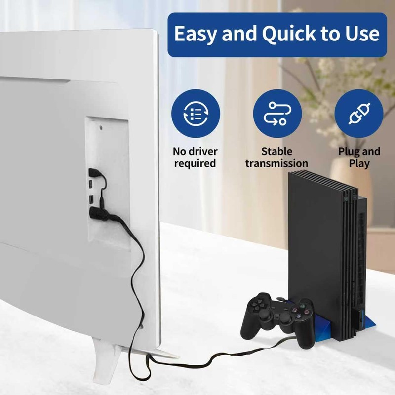 • Advanced HD Signal Conversion:This advanced PS1/PS2 to HDMI Adapter Cable applicable to convert analog signals from PS2 Console or PS1 systems into clear digital HDMI outputs, supporting high-definition switching between 720p or 1080p resolutions. It allows for immersive gaming on High-definition TVs,multimedia,monitors or projectors without the need for complex settings or technical expertise and comes with a USB Cable for charging while playing games