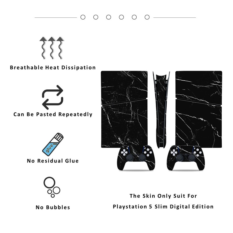 PS5 Slim Digital Version Skin for Console and Controllers, Vinyl Sticker Play-Station 5 Slim Skins, Wrap Decal Cover Protective Accessories for PS5 Slim Digital Edition(Deep Black Marble)