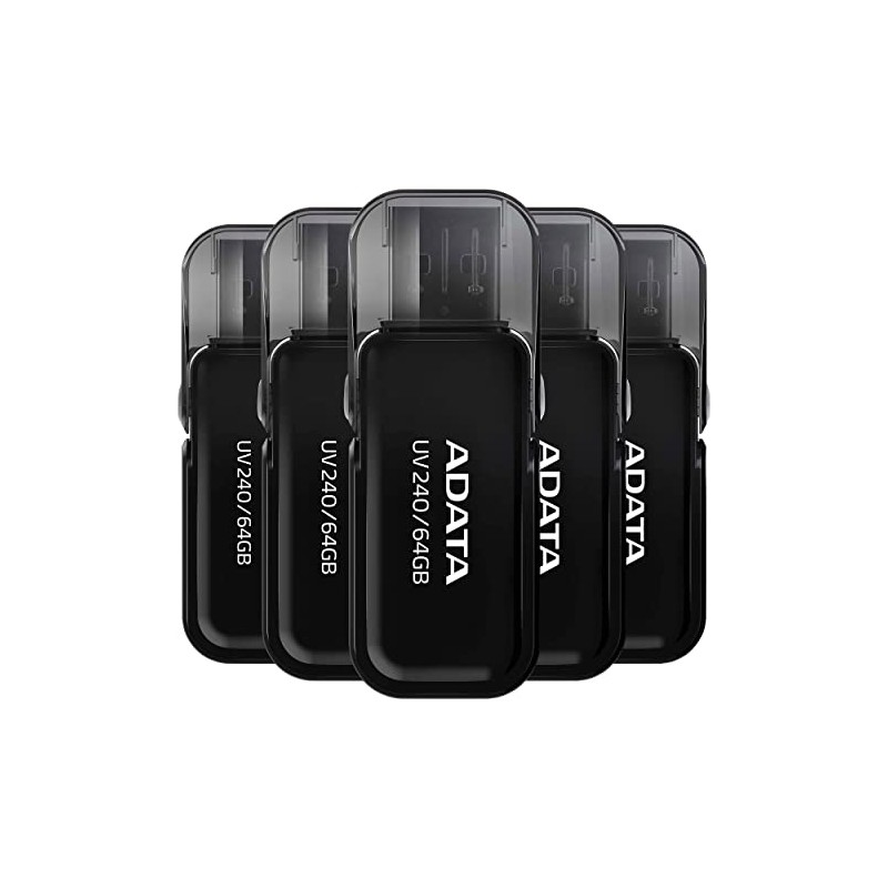 PSA COMPUTO Y PAPELERIA Kit de 5 Piezas Memoria USB 64 GB (Modelo AUV240-64G-RBK) Flash Drive Negro 2.0, Compatibilidad Completa, USB Tipo A con Capucha Abatible