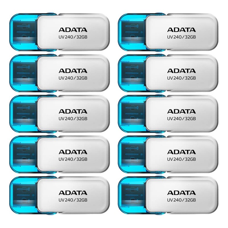 PSA Kit 10 Piezas Memoria USB 32 GB ADATA (Modelo AUV240-32G-RWH) Flash Drive 2.0, Compatibilidad Completa, USB Tipo A con Capucha Abatible, COMPUTO Y PAPELERIA (Blanco)