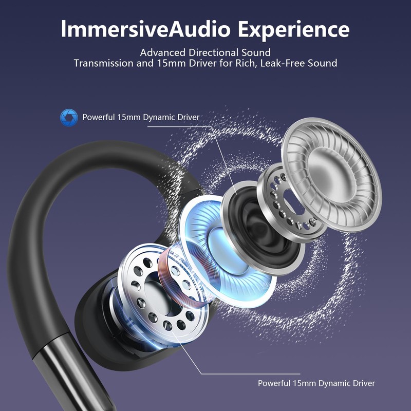 - [Open-Ear Design for Comfort] Made of lightweight PC material, each earbud weighs only 8g and is IPX7 waterproof. The soft silicone ear hooks provide a secure fit, making them ideal for sports, workouts, and daily activities. Enjoy music while staying aware of your surroundings with these versatile earbuds.