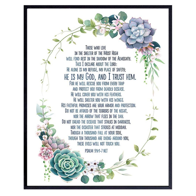 Psalm 91 - Succulent Religious Wall Decor - Psalms Bible Verse Wall Art - Church Decorations - Scripture Wall Art - God Wall Decor - Catholic Wall Decor - Christian Gifts for Women