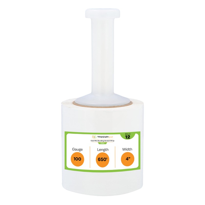 PSBM Mini Stretch Wrap with Handle, 12 Pack, 4 Inch x 650 Feet, 100 Gauge, Clear, Small Plastic Cling Film for Pallets Moving Storing