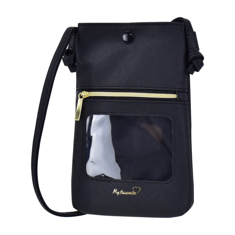 Pseg act0007 Shoulder Bag, Mini Bag, Cross-body Smartphone Pouch, Shoulder Pouch, Goods, Push Activity, Mini Shoulder with Clear Window, Black