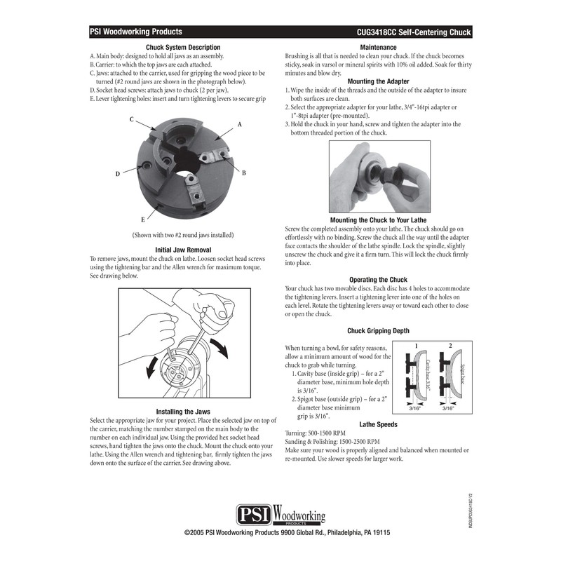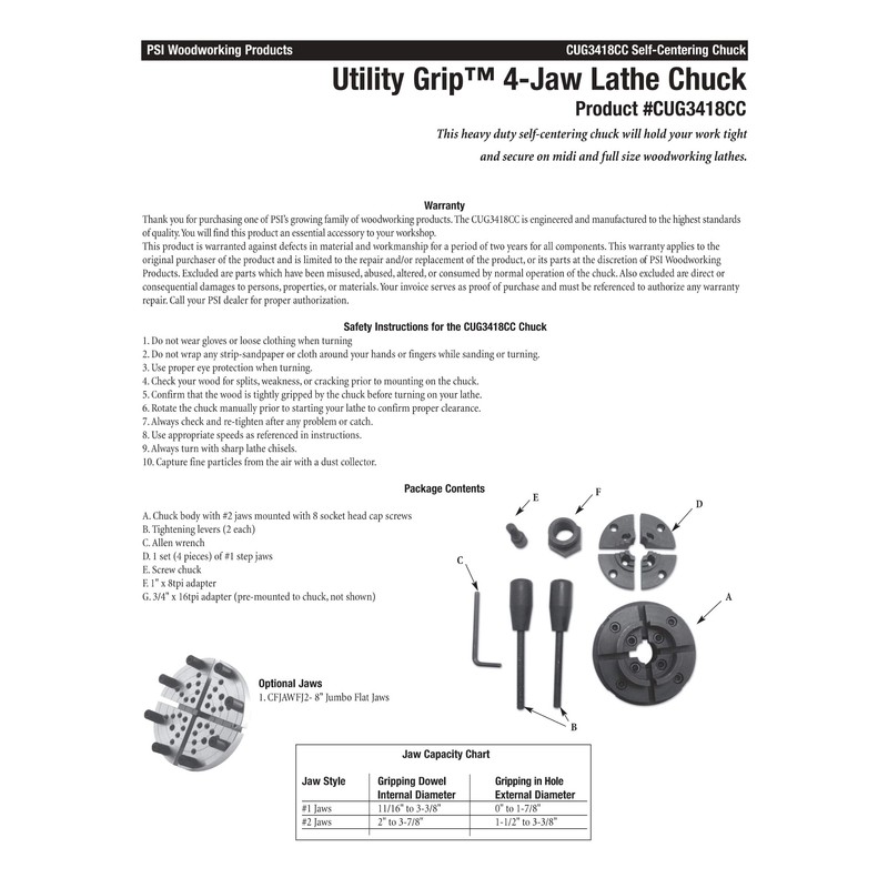 PSI Woodworking CUG3418CC Utility Grip 4-Jaw Lathe Chuck System