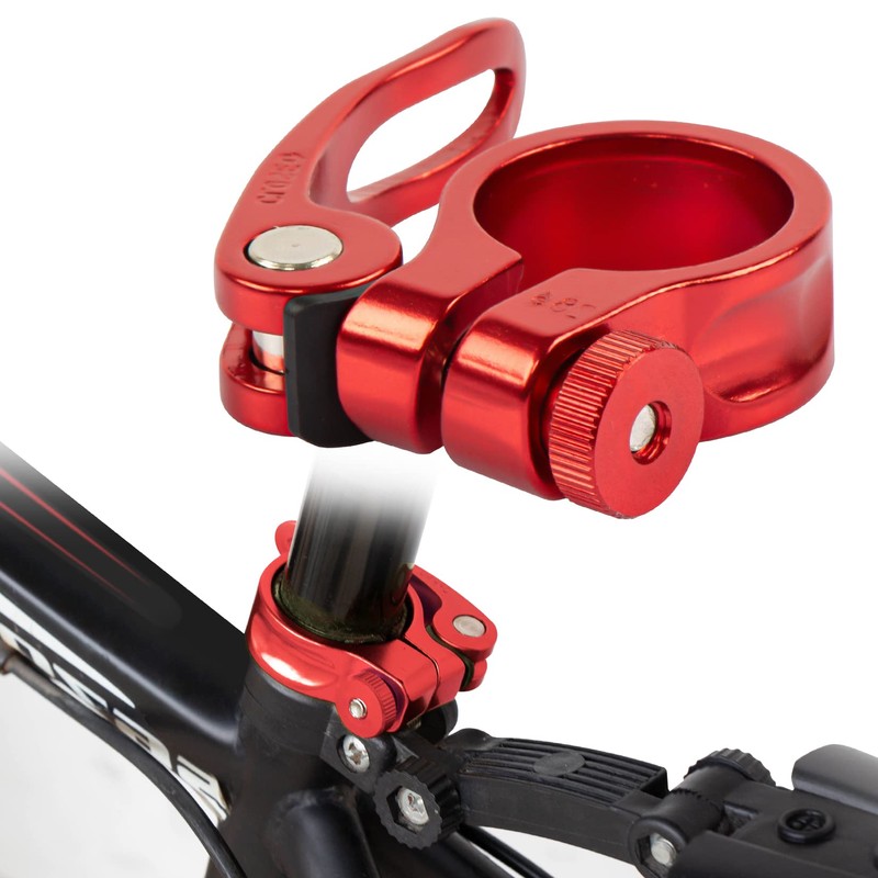 ---- The bicycle quick release seat clip is a durable and lightweight alternative that can add some beautiful colors to your riding and make adjusting the height of the seat post a breeze.