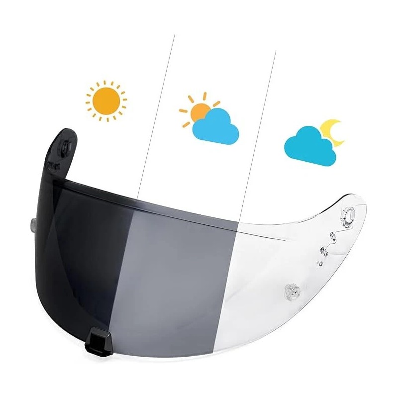 - 【Color Change Process】Exo T520/ST1400/R1 face shield photochromic is with the intensity of ultraviolet light to make the color darker , without ultraviolet light appears transparent color.