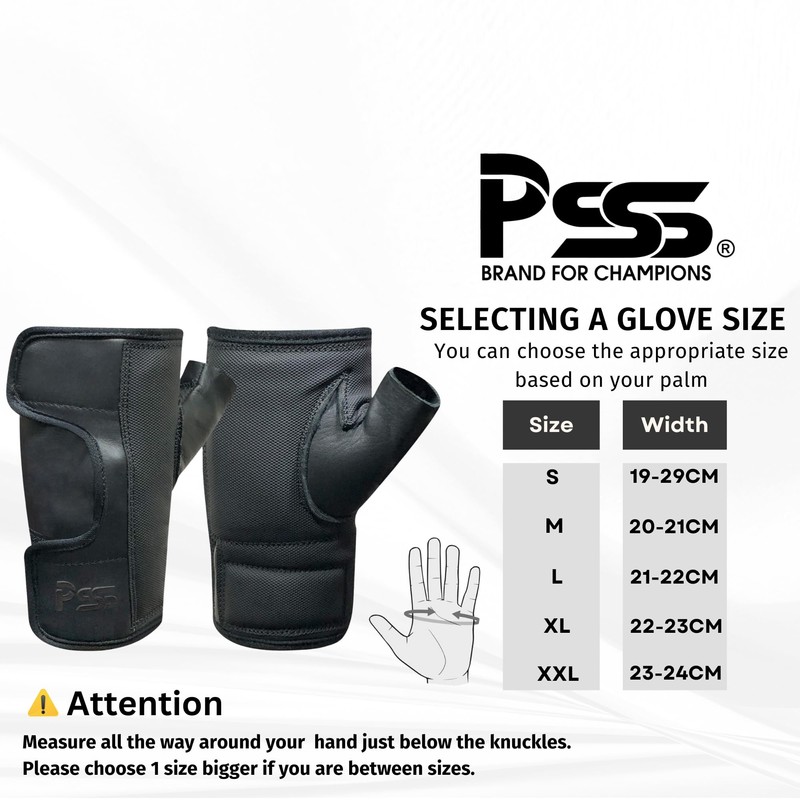 PSS Wheelchair Cow Skin Leather Fingerless Easy Open Adjustable Palm Padded Hand Protected Gloves Manual Wheelchairs Outdoor Activities 319 (XXL)