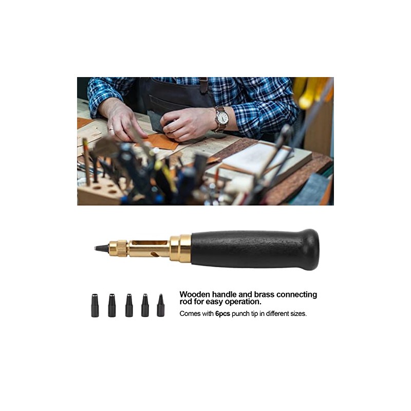 Pssopp Adjustable Screw Hole Punch, Pack of 6 Adjustable Japanese Screw Punch, Leather Punch, Leather Tool, Book Binding Tool for Sewing Leather